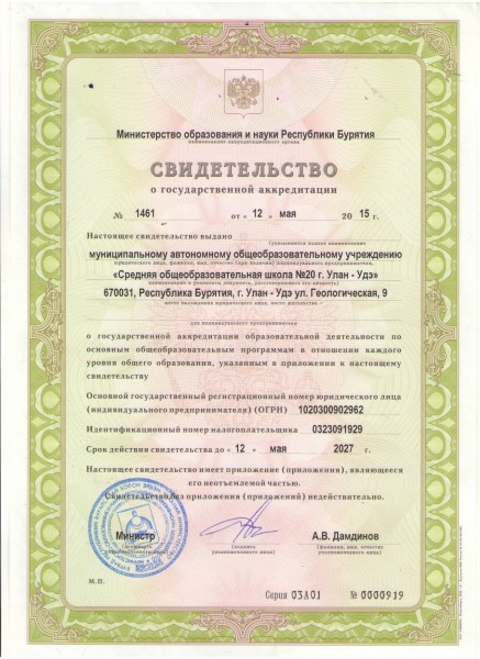 | Сокращенное наименование образовательной организации* | МАОУ "СОШ №20 г. Улан-Удэ" |